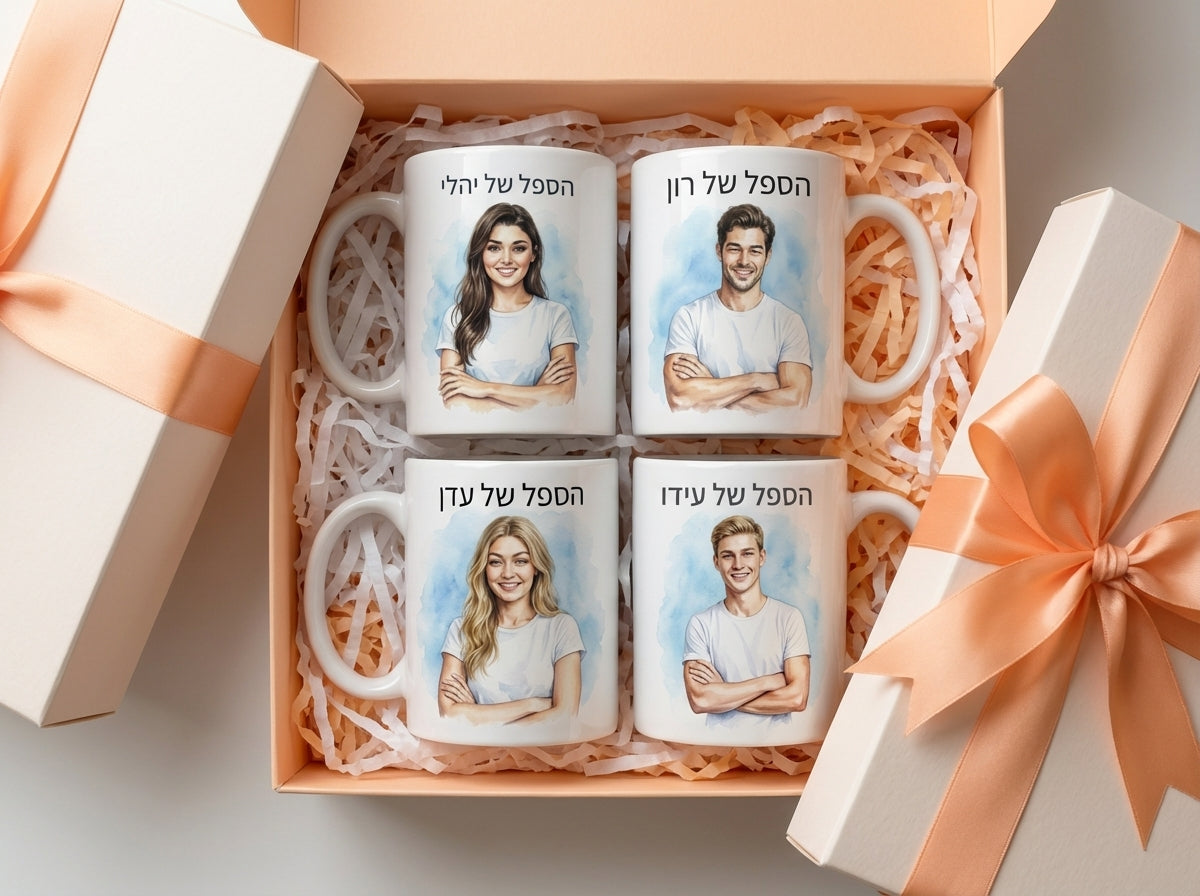 מקבלים הצצה ראשונה לאיך הספלים שלכם הולכים להיראות. משלימים את ההזמנה ואנחנו כבר נדאג שכל הסט יגיע אליכם מעוצב ומוכן